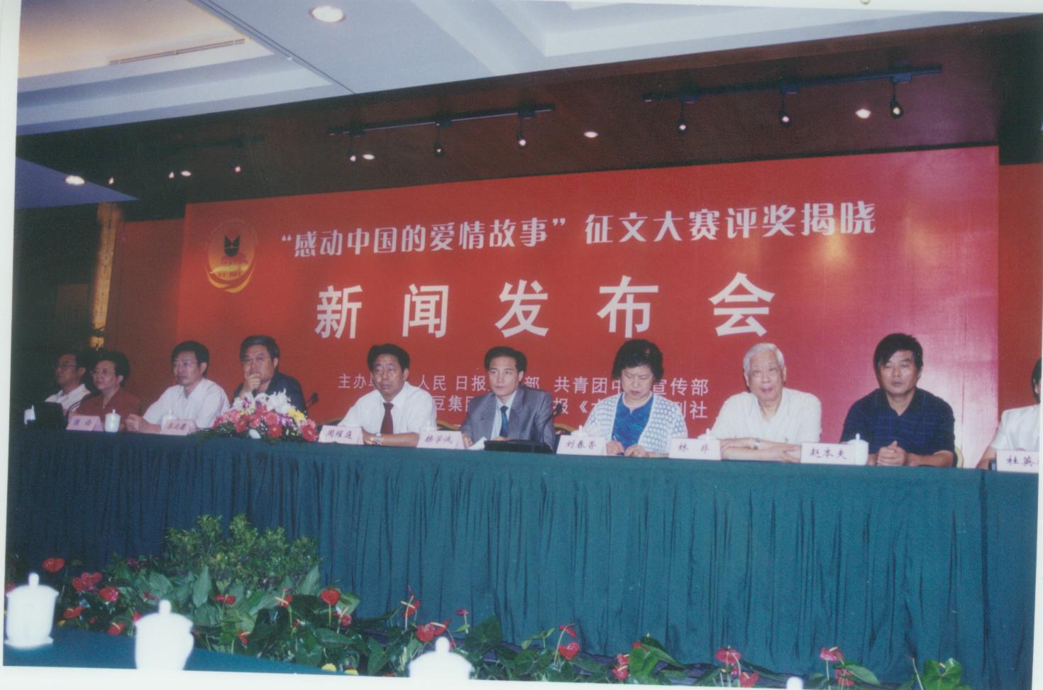 當天下午,“中國民俗文化·紅豆相思節研討會”也在北京如期舉行。人民日報文藝部主任郭運德,中國民間文藝家協會副主席、秘書長劉春香,共青團中央宣傳部長操學誠等多位民俗專家學者應邀參加了這次研討會。 感動中國的愛情故事征文大賽從5月到截止,已收到來自全國各地(含港、澳、臺)的來稿近萬篇,來稿的取材既有歷史或現代名人浪漫曲折的愛情歷程,也有平凡真摯而感人的愛情故事。參賽者有工、農、商、學、兵,也有國家公務員、記者和作家,年齡最大的82歲,最小的15歲。在這次大賽中,政界偉人周恩來,航天英雄楊利偉,人民的好公安局長任長霞等名人都成了作者的創作題材。