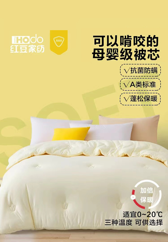 HOdo Home Textile Co., Ltd. is one of the subsidiaries of HOdo Group. Since its establishment in 1998, HOdo Home Textile has continuously promoted brand construction, realized transformation and upgrading, and gradually formed four industrial layouts of HOdo Home Textile chain monopoly, e-commerce, home textile production, and small commodities. Over the years, HOdo Home Textile has won the honors of "Top Ten Environmental Protection Home Textile Brands", "China's Most Popular and Charming Home Textile Brands", "New Fashion Brands" and "National Advanced Enterprise in the Implementation of Excellent Performance Model in Textile". HOdo Home textile always adheres to the principle of "quality first", integrates design, production and sales, and actively creates "warm, classic and fashionable" home textile products with the core concept of "family, love and friendship". The products cover a full range of household products, including quilt core series, suite series, pillow core series, wedding celebration series, blanket series, mattress series, summer cool series and thousands of other products to meet the one-stop consumption mode of household textiles.