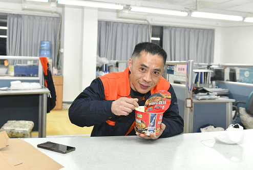 被問起這個(gè)稱呼,吳曉東倒有些難為情,“辦公室的方便面都快被我吃完了”。他解釋道,其實(shí)我們每天都有訂餐,但一些黨員突擊隊(duì)、志愿者同事來車間一線幫忙,有時(shí)候盒飯份數(shù)不夠,理應(yīng)讓他們先吃,有時(shí)候自己忙過了飯點(diǎn),吃方便面省時(shí)又省事。受到身邊黨員同志高品亞、王文娟等的工作干勁感染,一句簡單的“非常時(shí)期,非常對(duì)待”體現(xiàn)了吳曉東同樣任勞任怨、毫不計(jì)較的工作態(tài)度。