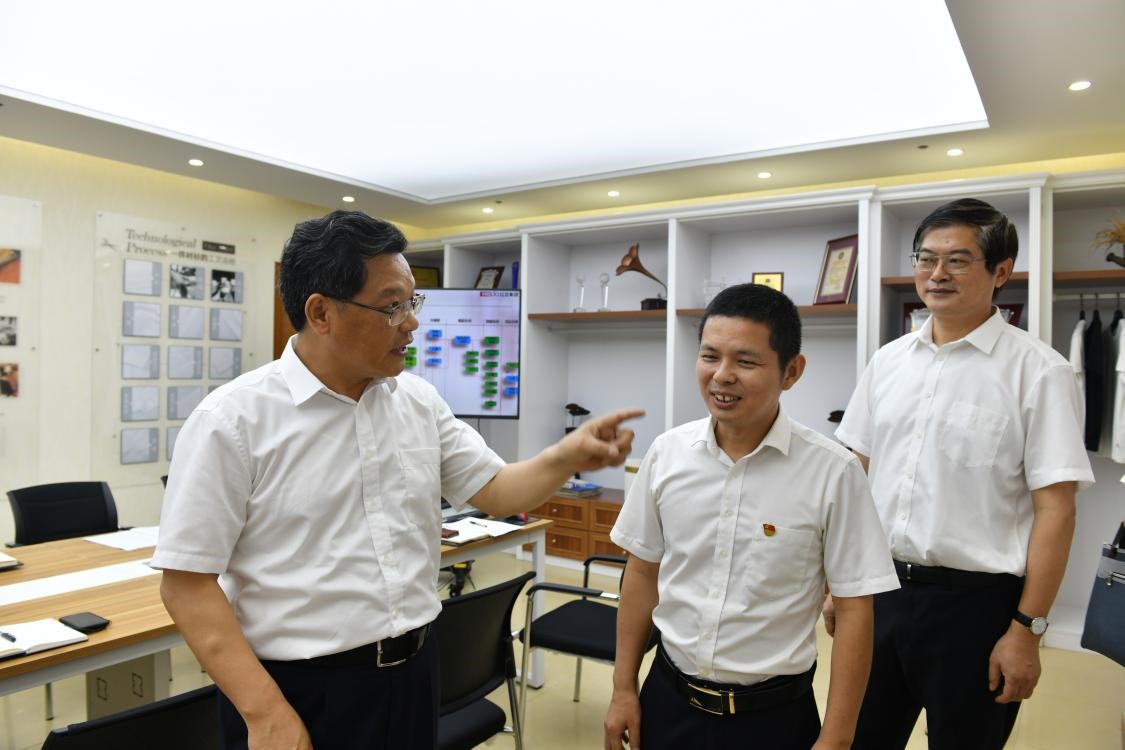 在勞模工作室,全國勞模候選人郭軍偉向任振鶴介紹了近期開展的襯衫、西服智能化個性定制項目,任振鶴對這一項目的產業(yè)化十分看好。他表示,紅豆堅持以黨建為引領、產改為引擎,率先創(chuàng)新機制、搭建平臺,大力弘揚勞模精神、工匠精神,充分給予了產業(yè)工人出彩的機會。全國勞模、省勞模和市勞模遍布紅豆各層級,形成了一支勞模梯隊,激發(fā)出更多員工的創(chuàng)新創(chuàng)業(yè)熱情,使企業(yè)煥發(fā)出無限生機。