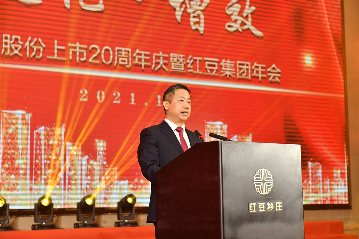 ? ? ? ? 紅豆集團董事局主席周海江出席活動并發(fā)表講話,對紅豆股份上市20周年表示祝賀,同時回顧總結了紅豆集團2020年發(fā)展成果,并從一流的制度保障、一流的自主創(chuàng)新、一流的自主品牌、一流的自主資本、一流的進化速度、一流的卓越管理等六個方面闡述集團“進化增效,打造世界一流企業(yè)”的發(fā)展目標。