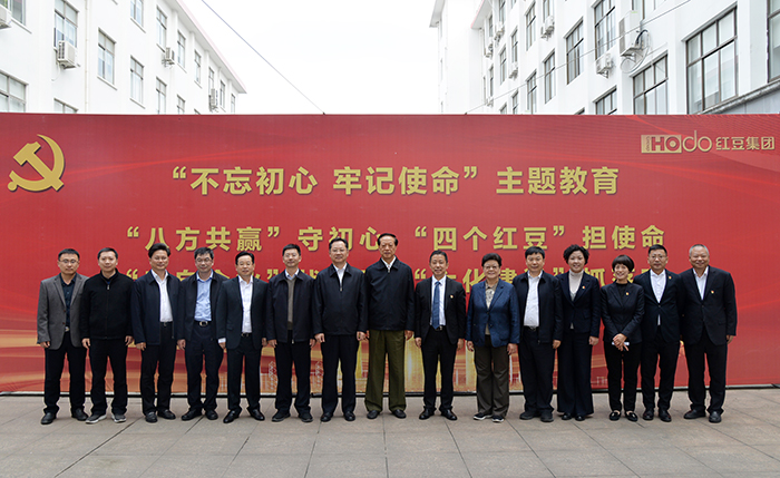 11月22日,江蘇省委第一巡回指導(dǎo)組組長張九漢、副組長方未艾、倪春青一行來紅豆集團(tuán)調(diào)研“不忘初心、牢記使命”主題教育工作情況,特別稱贊紅豆主題教育開展的扎實有成效,企業(yè)黨建工作做得好,經(jīng)營發(fā)展也做得好。無錫市委常委、組織部部長馮軍,錫山區(qū)委書記顧中明,區(qū)委副書記言國強(qiáng)、區(qū)委組織部部長竇虹等陪同接待。