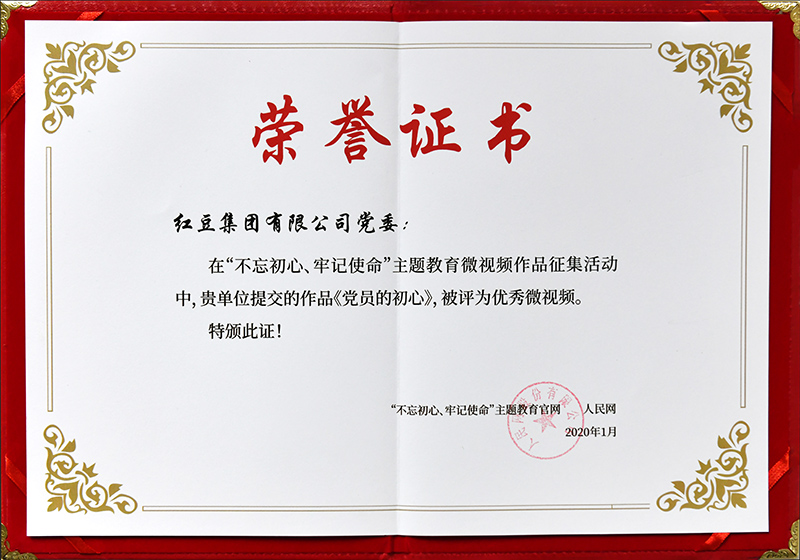 紅豆集團參評的《黨員的初心》,經過專家評選,網絡投票,從全國4000多件作品中脫穎而出,被評為50優秀微視頻作品之一,紅豆集團也是全國唯一一家民營企業獲得此項殊榮。